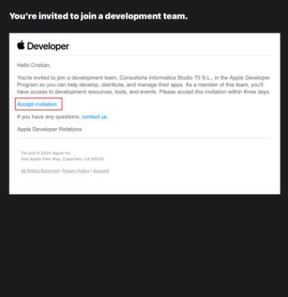 En el correo electrónico nos encontraremos con un mensaje cómo el de la imagen, en el que tendremos que dar clic a "Accept invitation".