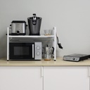 8433373063150Este estante organizador de cocina tiene el espacio correspondiente para el microondas y sus diferentes departamentos para organizar los elementos que deseemos. Se trata de un organizador con una anchura regulable soportando entre 10kg y 20kg según la anchura que le asignemos.